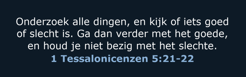Als we de waarheid dus écht willen vinden én begrijpen, dan zullen we de Bijbel open moeten slaan en alles moeten toetsen aan de Bijbel!